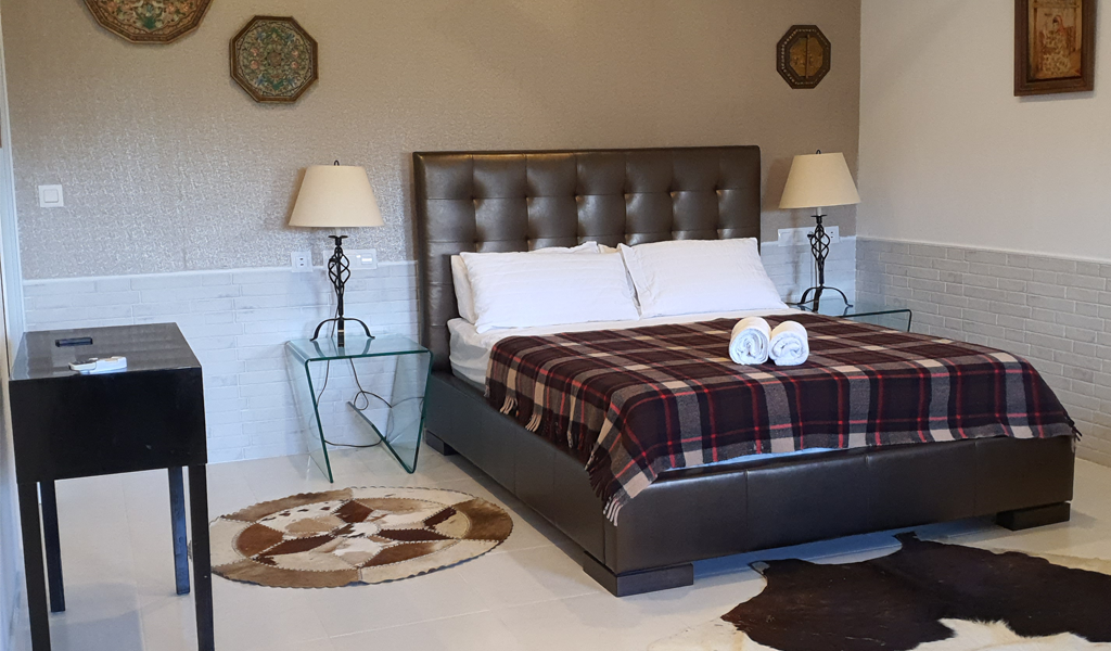 The room comprises of a modern double bed. The room comes fully air conditioned with an en suite bathroom area and an external entrance door.